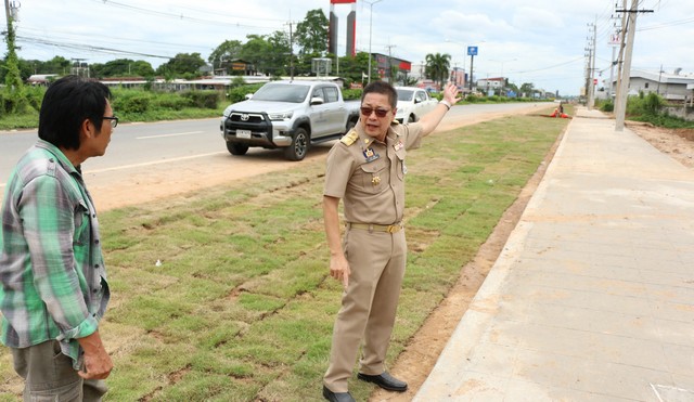 นายวิจิตร กล่าวต่อว่า อีกทั้งการปลูกหญ้าดังกล่าวไม่ได้ปลูกบนผิวจราจรหลักที่รถสัญจรไปมา แต่เป็นการปลูกบริเวณขอบรายทางชิดกับฟุตบาท ซึ่งเดิมก็เป็นดินอยู่แล้ว ทั้งนี้การปลูกหญ้านอกจากช่วยป้องกันการกัดเซาะแล้ว ยังเพิ่มพื้นที่สีเขียว เพิ่มทัศนียภาพความสวยงามและสามารถจอดรถข้างทางได้ด้วย