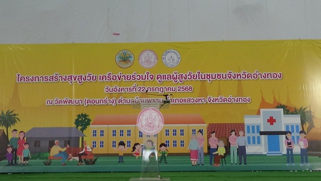 โดย “โครงการสร้างสุขสูงวัย เครือข่ายร่วมใจ ดูแลผู้สูงวัยในชุมชนจังหวัดอ่างทอง” เพื่อเสริมสร้างความรู้ ความเข้าใจแก่ครอบครัวและชุมชนเกี่ยวกับการดูแลผู้สูงอายุทั้งด้านร่างกาย จิตใจ และสังคม ส่งเสริมให้ผู้สูงอายุมีคุณภาพชีวิตที่ดี สามารถอยู่ร่วมกับครอบครัว ชุมชน และสังคมอย่างมีคุณค่า ซึ่งที่ผ่านมากรมกิจการผู้สูงอายุได้สนับสนุนงบประมาณผ่าน การขับเคลื่อนของสำนักงานพัฒนาสังคมและความมั่นคงของมนุษย์จังหวัดอ่างทอง อาทิ โครงการปรับสภาพแวดล้อมและสิ่งอำนวยความสะดวกของผู้สูงอายุ ให้เหมาะสมและปลอดภัย รวม 270 หลัง 10,800,000 บาท