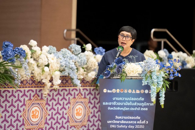 เมื่อวันที่ 23 กรกฎาคม 2568 ผู้ช่วยศาสตราจารย์ ดร.จรูญ สารินทร์ รองอธิการบดีฝ่ายกิจการพิเศษ มหาวิทยาลัยนเรศวร กล่าวต้อนรับผู้เข้าร่วมงานความปลอดภัยและอาชีวอนามัยในส่วนภูมิภาค จังหวัดพิษณุโลก ประจําปี 2568 และ วันความปลอดภัยมหาวิทยาลัยนเรศวร ครั้งที่ 3 (NU Safety day 2025)