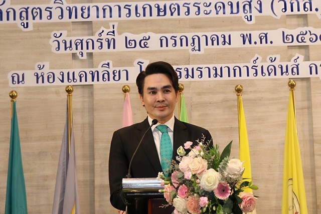 นายอรรถกร ศิริลัทธยากร รัฐมนตรีว่าการกระทรวงเกษตรและสหกรณ์ กล่าวแสดงความยินดีแก่ผู้สำเร็จการอบรมว่า “ขอแสดงความยินดีกับทุกท่านที่สำเร็จการอบรมหลักสูตรวกส.รุ่นที่ 6 ผมเชื่อมั่นว่าประสบการณ์ ความรู้ และเครือข่ายที่ทุกท่านได้รับ จะเป็นพลังสำคัญในการรับใช้พี่น้องเกษตรกร รับใช้แผ่นดินได้ดียิ่งขึ้น เพื่อยกระดับศักยภาพภาคเกษตรไทย โดยเฉพาะในยุคที่การประยุกต์ใช้เทคโนโลยีและนวัตกรรมกลายเป็นเครื่องมือหลักในการแข่งขัน ซึ่งสอดคล้องกับนโยบายของผม และท่านอัครา พรหมเผ่า รัฐมนตรีช่วยว่าการกระทรวงเกษตรและสหกรณ์ ที่กำหนดเป็นนโยบายการดำเนินงานของกระทรวงเกษตรฯ”
