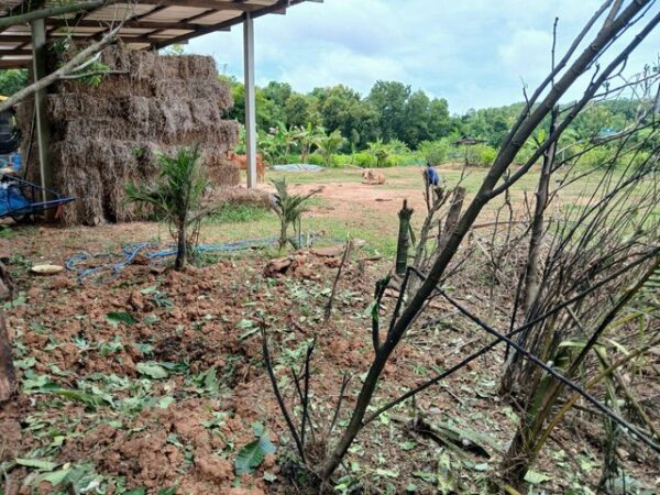 อำเภอบ้านกรวด//จุดผ่อนปรนช่องสายตะกูฝั่งบุรีรัมย์ ปะทะเดือดตั้งแต่ตอนเช้า สัตว์เลี้ยงชาวบ้านตายเป็นจำนวนมาก ลูกปืนใหญ่ BM21 ตกทั่วบริเวณ บ้านหลังหนึ่งโดนลูกปืนทะลุหลังคาฝังพื้นบ้าน รอ EOD มาเก็บกู้