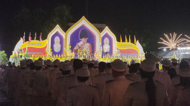 เมื่อวันที่ 28 กรกฎาคม 2568 เวลา 19.00 น. ที่ลานอเนกประสงค์หน้าอำเภอคลองหลวง จ.ปทุมธานี น.ส.อภิสรา เกษอินทร์ นายอำเภอคลองหลวง พร้อมด้วย นายยุทธศักดิ์ ชูประเสริฐ นายกเทศมนตรีเมืองคลองหลวง รศ.วิระศักดิ์ ฮาดดา นายกองค์การบริหารส่วนตำบลคลองสาม พ.ต.อ.อธิเมศร์ ไชยศรัญวิชญ์ ผู้กำกับการสถานีตำรวจภูธรคลองหลวง นายทองสุก แสนจักร สมาชิกสภา อบจ.เขตเลือกตั้งที่ 3 อ.คลองหลวง นางสาวพรปริญญา ศรีจันทร์ สมาชิกสภา อบจ.เขตเลือกตั้งที่ 5 นายสัญชาติ คุระนันท์ สมาชิกสภา อบจ.เขตเลือกตั้งที่ 7 นำคณะผู้บริหารเทศบาลเมืองคลองหลวง ข้าราชการและประชาชนพร้อมใจใส่เสื้อสีเหลือง ร่วมพิธีถวายราชสดุดี จุดเทียนชัยถวายพระพรชัยมงคล ถวายเครื่องราชสักการะ วางพานพุ่มเงิน พุ่มทอง แด่พระบาทสมเด็จพระเจ้าอยู่หัว เนื่องในโอกาสมหามงคลวันเฉลิมพระชนมพรรษา 28 กรกฎาคม 2568