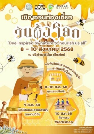 ศูนย์ส่งเสริมเทคโนโลยีการเกษตรด้านแมลงเศรษฐกิจจังหวัดเชียงใหม่ กรมส่งเสริมการเกษตร เตรียมจัดงาน “วันผึ้งโลก” ภายใต้แนวคิด “Bee inspired by nature to nourish us all”ระหว่างวันที่ 8–10 สิงหาคม 2568 ณ จริงใจมาร์เก็ต เชียงใหม่