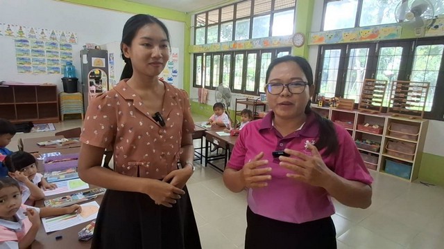 ส่วน Mrs. Nina Mae D. Lim ครูผู้สอนภาษาอังกฤษ ซึ่งเป็นชาวฟิลิปปินส์ กล่าวถึงการสอน และความประทับใจที่ได้มาเป็นครูที่นี่ ผ่านครูผู้แปลภาษาว่า วันนี้ได้มาสอนที่ฝ่ายอนุบาล ทำการสอนเรื่อง ตัวอักษรตัว J เป็นกิจกรรมที่ให้เด็กฝึกกล้ามเนื้อมือด้วย และมีความสุขเป็นอย่างมากที่ได้มาสอนที่ ทุกคนไม่ว่าจะเป็นครู นักเรียนใจดีมาก เป็นกันเองอย่างมาก สิ่งที่คาดหวังไว้ในการคือ ทักษะพื้นฐานของนักเรียนอนุบาล