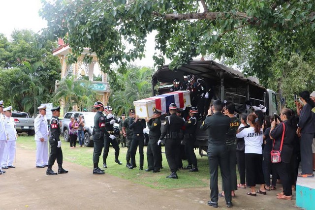 ยโสธร-พระบาทสมเด็จพระเจ้าอยู่หัว พระราชทานพระบรมราชานุเคราะห์ น้ำหลวงอาบศพและพวงมาลาหน้าหีบศพ สิบโท ต่อพงษ์ พันดวง