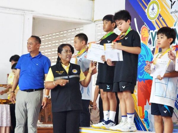 สุโขทัย-นายกพัฒสอนมอบเหรียญรางวัลกีฬาเทศบาลคัพ แบดมินตันเยาวชนที่สนามสุโขทัย
