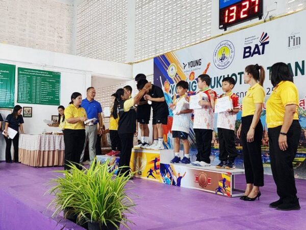 นางพัฒสอน ดอนพิมพา นายกเทศมนตรีเมืองสุโขทัยธานี ประธานมอบเหรียญรางวัลให้กับนักกีฬาแต่ละรุ่น พร้อมด้วยนายนพพร ภู่เจริญ รองนายกเทศมนตรีเมืองสุโขทัยธานีจัดขึ้นโดยเทศบาลเมืองสุโขทัยธานี นางณัฐชนันท์ บงศรีดา ผู้อำนวยการกองการศึกษา ร่วมกับชมรมแบดมินตันเทศบาลเมืองสุโขทัยธานี และสมาคมแบดมินตันแห่งประเทศไทย ที่มาร่วมเชียร์ให้กำลังใจทัพนักกีฬาแบดมินตันที่เดินทางมาแข่งขันในครั้งนี้ จัดขึ้นตั้งแต่วันที่ 26-30 กรกฎาคม 2568 ณ สนามแบดมินตันเทศบาลเมืองสุโขทัย ต.ธานี อ.เมืองสุโขทัย