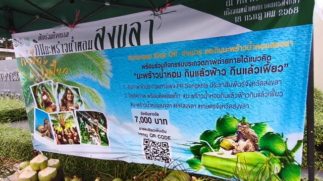 ตามโครงการของผู้ว่าราชการจังหวัดสงขลา “มะพร้าวน้ำหอม กินแล้วฟ้าว กินแล้วเฟี้ยว” ที่เชิญชวนให้คนสงขลา กินน้ำมะพร้าวน้ำหอมเพิ่มขึ้น และช่วยเหลือชาวสวนมะพร้าวน้ำหอม หลังราคามะพร้าวตกต่ำ
