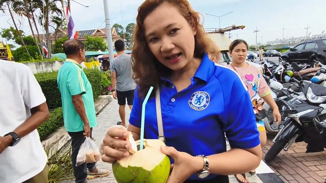 วันนี้ 1 สิงหาคม 2568 ที่บริเวณหน้าป้ายเทศบาลนครสงขลา ตรงข้ามสนามกีฬาติณสูลานนท์ ถนนราชดำเนิน อำเภอเมือง จังหวัดสงขลา นายอภิชาติ ยุพยงค์ อายุ 44 ปี ประธานกลุ่มแปลงใหญ่มะพร้าวน้ำหอม ต.ชุมพล อ.สทิงพระ จ.สงขลา ได้นำมะพร้าวน้ำหอมจากสมาชิกกลุ่มแปลงใหญ่มะพร้าวน้ำหอมตำบลชุมพล จำนวน 300 ลูก และน้ำมะพร้าวน้ำหอมแช่เย็น จำนวน 60 แก้ว มาวางขาย ได้รับความสนใจจากประชาชนเป็นอย่างมาก แวะเวียนมาซื้ออย่างไม่ขาดสาย เนื่องจากราคามะพร้าวน้ำหอม ลูกละเพียง 10 บาทเท่านั้น และน้ำมะพร้าวน้ำหอม เย็นๆ แก้วละ 15 บาท กินแล้วชื่นใจ น้ำมะพร้าว 60 แก้วใช้เวลาไม่นานก็หมด