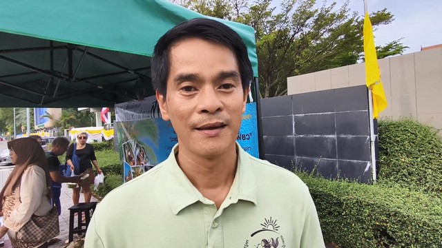 นายอภิชาติ ยุพยงค์ อายุ 44 ปี ประธานกลุ่มแปลงใหญ่มะพร้าวน้ำหอม ต.ชุมพล อ.สทิงพระ จ.สงขลา กล่าวว่า ตามโครงการของท่านผู้ว่าราชการจังหวัดสงขลา ได้จัดพื้นที่ Kick Off มะพร้าวน้ำหอม มีจุดประสงค์ 2 ข้อก็คือ เพื่อเป็นการประชาสัมพันธ์ให้คนสงขลา บริโภคน้ำมะพร้าวน้ำหอมเพิ่มมากขึ้น ประเด็นที่ 2 เนื่องจากในช่วงนี้ผลผลิตมะพร้าวน้ำหอมออกมาเยอะ พร้อมกันทั้งประเทศ ทำให้ ราคามะพร้าวน้ำหอมตกต่ำ พื้นที่ตรงนี้ก็เป็นอีกหนึ่งช่องทาง ที่ท่านผู้ว่าราชการจังหวัดสงขลาได้ให้กลุ่มมะพร้าวแปลงใหญ่มะพร้าวน้ำหอม ของตำบลชุมพล อำเภอสทิงพระ จังหวัดสงขลา ได้มีพื้นที่นำผลผลิต ทางด้านการเกษตรได้มาจำหน่าย บริเวณหน้าเทศบาลนครสงขลา วันนี้เอามะพร้าวน้ำหอมมาจำนวน 300 ลูก และมีในส่วนของการแปรรูป ที่ทำมาเฉพาะน้ำมะพร้าวอย่างเดียวประมาณ 60 แก้ว ก็ขายเกือบหมดแล้ว