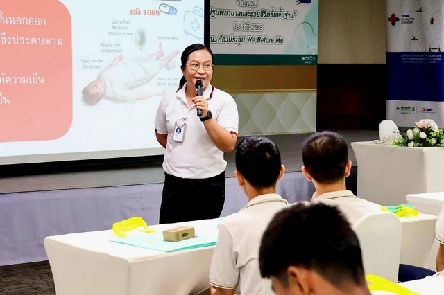 โดยได้วิทยากรผู้เชี่ยวชาญเฉพาะทาง พว.ดวงพร แหล่งหล้า พยาบาลชำนาญการ และ ทีมพยาบาล รพ.พญาไท3 เป็นผู้ให้ความรู้ในครั้งนี้ เพื่อใช้ในการช่วยเหลือประชาชน เมื่อเกิดเหตุฉุกเฉิน ได้ทันท่วงที และ นำส่งต่อถึงมือแพทย์ได้ย่างปลอดภัย