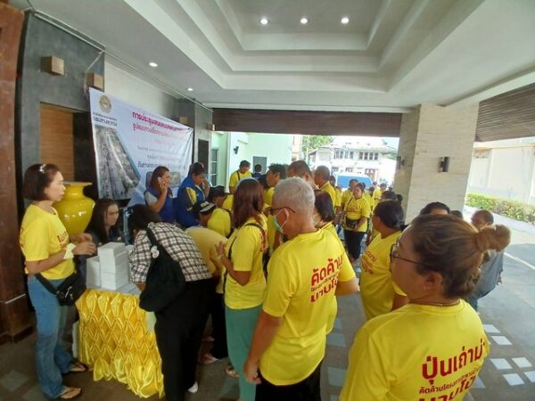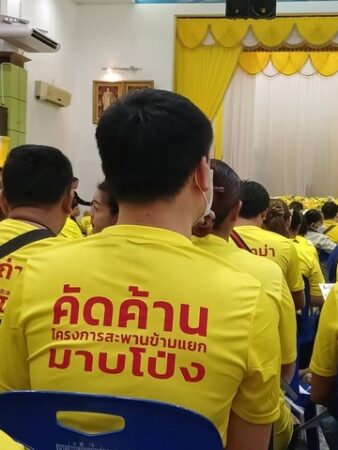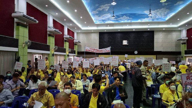 โดยมีผู้เข้าร่วมประชุมจากภาคส่วนต่างๆ จากหน่วยงานระดับจังหวัด ระดับอำเภอ องค์กรปกครองท้องถิ่น หน่วยงานรัฐวิสาหกิจ ผู้นำชุมชน สื่อมวลชนต่างๆ ผู้ที่มีส่วนได้เสีย เข้าประชุม กว่า500ท่าน ด้วยความเรียบร้อย มีชาวบ้านที่ได้รับผลกระทบร่วมแสดงความคิดเห็นให้ยกเลิกและคัดค้านจำนวนมาก ท่านชัยจิตร รัฐขจรอดีตผู้ว่าราชการจังหวัด ร่วมคัดค้านนางสุภมาส คงวิวัฒนากุล เป็นตัวแทนรับมอบอำนาจจากประชาชนที่คัดค้านไม่ได้มาเข้าร่วมประชุมอีก600ท่าน ส่งมอบหนังสือผ่านรองผู้ว่าราชการจังหวัดให้กับบริษัทที่ปรึกษาโครงการฯ กรมทางหลวง และนายวิเชษฐ์ เกตุแก้ว อดีตแกนนำ ที่สนับสนุน โครงการ อีอีซี เมื่อ6ปีที่แล้ววันนี้มาร่วมคัดค้านและเสนอทางออกกับเวทีนี้ด้วย