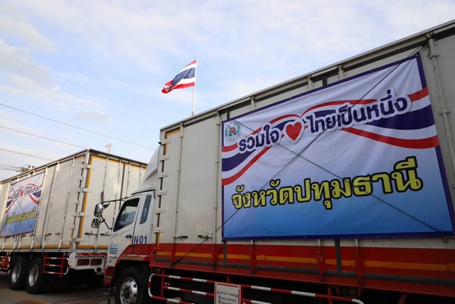 ปทุมธานี ร่วมเป็นอีกหนึ่งแรงใจ ช่วยเหลือคนไทยด้วยกัน ปล่อยขบวนรถบรรทุก ข้าวสาร อาหารแห้ง สิ่งของจำเป็น ปลายทางจังหวัดศรีสะเกษ