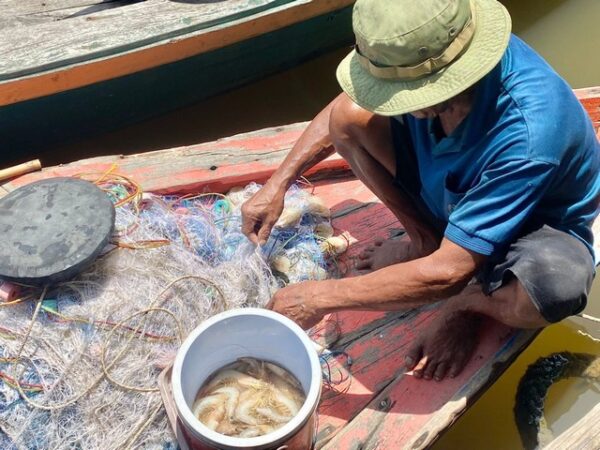อย่างไรก็ตาม คุณลุงเปี่ยว อายุ 65 ปี ชาวประมงอีกรายกล่าวว่า ช่วงนี้น้ำทะเลยังแปรปรวน น้ำไม่เดิน ทำให้บางวันแทบไม่ได้กุ้งเลย โดยเขาออกเรือแต่เช้ามืดและเก็บอวนประมาณช่วงเที่ยง แต่ได้กุ้งน้อยมากขายได้รวมแล้วไม่ถึง 1,000 บาท