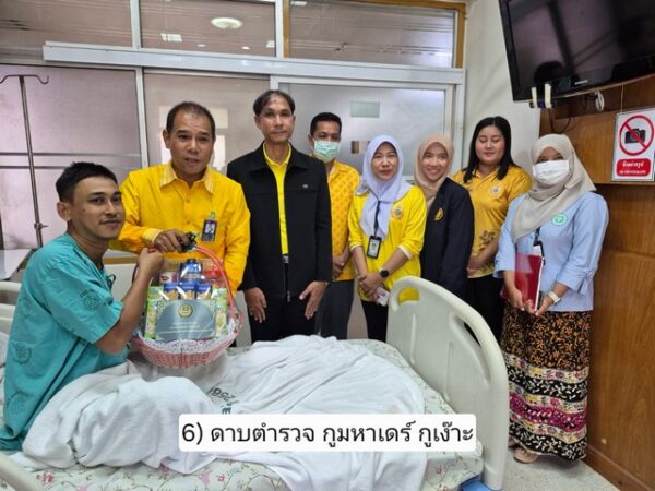 ในการนี้ ผู้ช่วยเลขาธิการ ศอ.บต. ได้พูดคุยให้กำลังใจ พร้อมมอบกระเช้าเยี่ยมในนาม เลขาธิการ ศอ.บต. เพื่อเป็นขวัญกำลังใจแก่ผู้ได้รับบาดเจ็บ สำหรับสิทธิการช่วยเหลือเยียวยาผู้ได้รับผลกระทบฯ ให้เป็นไปตามที่แพทย์ได้ระบุไว้ รวมไปถึงสิทธิอื่นๆตามหลักเกณฑ์ที่ควรได้รับอีกด้วย