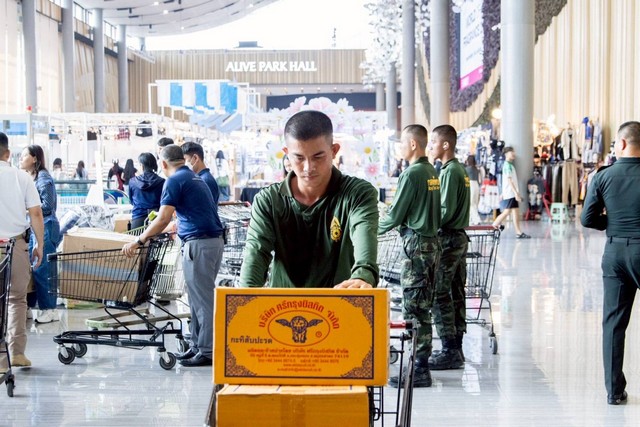 ปทุมธานี ฟิวเจอร์พาร์คและสเปลล์ส่งมอบสิ่งของบริจาคให้กองทัพบกช่วยประชาชนในพื้นที่เสี่ยงภัย