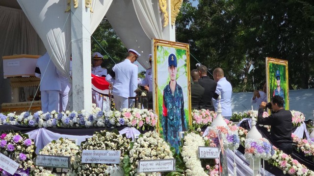 อำเภอละหานทราย//เผาแล้วทหารพลีชีพเพื่อชาติ พระราชทานเพลิงศพสมเกียรติ แม่ขอมาเกิดกับแม่อีก พี่สาวชี้น้องเก่งที่สุดและภูมิใจที่สุดกับน้อง ขณะเพื่อนร่วมรบเผยนาทีเพื่อนโดนปืนใหญ่นัดเดียว 2 ศพ