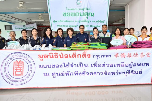 มูลนิธิป่อเต็กตึ๊ง ส่งต่อธารน้ำใจผู้มีจิตศรัทธา มอบสิ่งของเครื่องใช้จำเป็น ให้แก่ผู้อพยพจากสถานการณ์ชายแดนไทย-กัมพูชา ณ ศูนย์พักพิงชั่วคราวในพื้นที่จังหวัดบุรีรัมย์ สุรินทร์ และศรีสะเกษ รวมมูลค่า 1.5 ล้านบาท