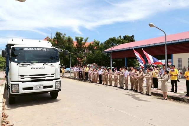 นครปฐม-พิธีปล่อยขบวนรถส่งมอบสิ่งของเพื่อช่วยเหลือผู้ประสบภัยจากเหตุการณ์สู้รบชายแดนไทย-กัมพูชา