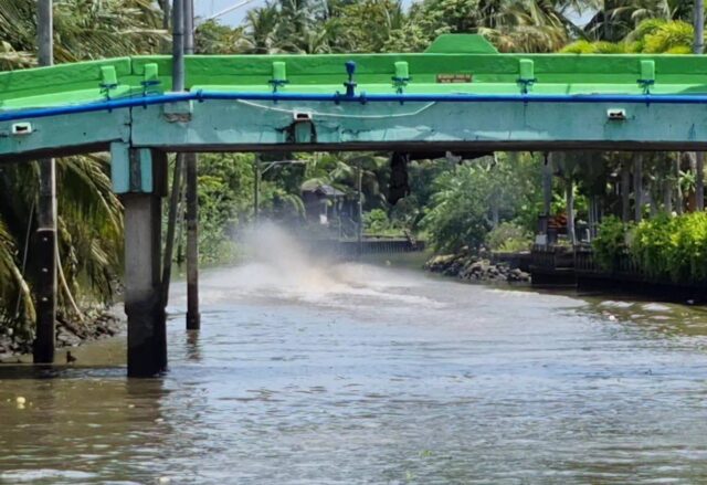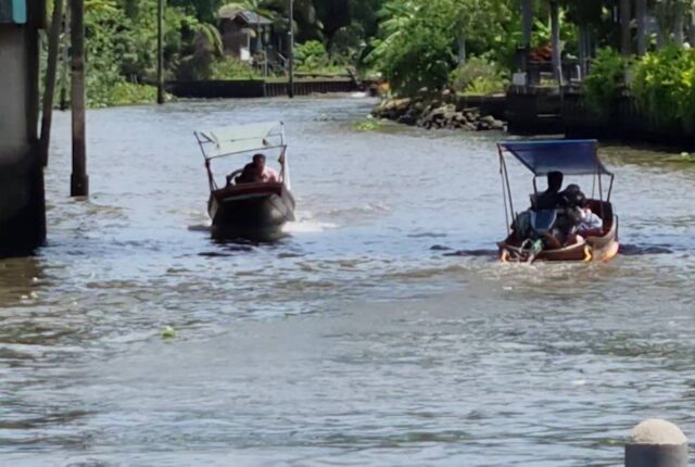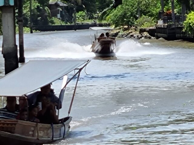 ด้านนายประวิทย์ ทรัพย์สมบัติ กำนันตำบลตาหลวง ก็บอกว่า เรื่องเรือเสียงดังและมีควันดำมีมานานแล้ว และเป็นสิ่งที่ควบคู่กับคลองมาจนชาวบ้านเอือมระอาแล้ว แม้ว่าจะมีหน่วยงานได้เรียกทั้งคนขับเรือและผู้ประกอบการท่าเรือไปพูดคุยหลายครั้ง ซึ่งก็ไม่สามารถแก้ปัญหาไม่ได้ เด็กนักเรียนก็ได้รับความร้อน ซึ่งเรือที่เสียงดังนั้นจะดังแสบหู บางครั้งที่น้ำขึ้นเรือวิ่งเร็วจนน้ำนั้นซัดเข้าไปในตัวบ้าน ซึ่งเรื่องนี้สามารถที่จะแก้ไขได้ แต่การแก้ไขก็จะได้แค่ 2-3 วัน หลังจากนั้นทุกอย่างก็จะกลับมาเหมือนเดิม แต่ถ้าหน่วยงานบังคับใช้กฎหมายอย่างจริงจังเชื่อว่าจะสามารถแก้ไขปัญหาได้ เพราะชุมชนจะต้องอยู่ควบคู่กับสิ่งแวดล้อมและแหล่งท่องที่ยวให้ได้ ที่ผ่านมาก็มีชาวบ้านหลายคนยอมที่จะขายบ้านแล้วย้ายไปอยู่ที่อื่นเพราะทนกับเสียงเรือที่ดัง