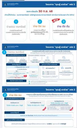 นอกจากนี้ ธปท. สภน. ได้ประชาสัมพันธ์โครงการ “คุณสู้ เราช่วย” เฟส 2 (โครงการฯ) ที่ได้ปรับปรุงเงื่อนไขของมาตรการเดิมและมีมาตรการใหม่เพิ่มเติม เพื่อให้ความช่วยเหลือลูกหนี้กลุ่มเปราะบาง   ได้ครอบคลุมมากขึ้น สำหรับลูกหนี้ของธนาคารพาณิชย์ สถาบันการเงินเฉพาะกิจ และผู้ประกอบธุรกิจที่มิใช่สถาบันการเงินที่เป็นบริษัทในกลุ่มธุรกิจทางการเงินของธนาคารพาณิชย์ ดังนี้
