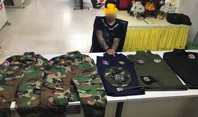 ตำรวจ สภ.ลำดวน จ.บุรีรัมย์ จับทหารเขมรชุด BHQ องครักษ์พิทักษ์ ฮุน เซน ในบ้านพักหลังหนึ่ง คาดมาฝังตัวส่งความเคลื่อนไหวทางการทหารไทยให้ฝ่ายกัมพูชา พบเครื่องแบบทหารติดตราสัญลักษณ์ BHQ หลายชุด เค้นสอบเครียด