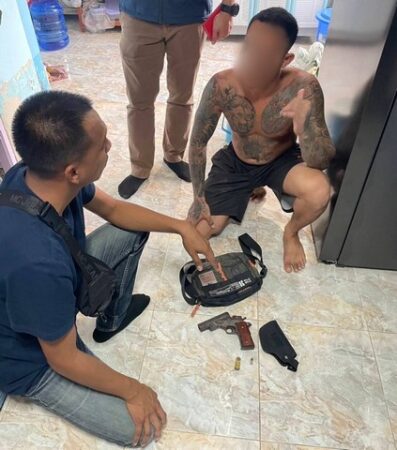 ซึ่งจากการตรวจค้นภายในบ้านพบอาวุธปืน 1 กระบอก และชุดทหารเขมรยศร้อยเอก และติดตราสัญลักษณ์ BHQ องครักษ์พิทักษ์ ฮุน เซน อีกหลายชุด เบื้องต้นตำรวจคาดว่ามาฝังตัวส่งความเคลื่อนไหวทางการทหารไทยให้ฝ่ายกัมพูชา