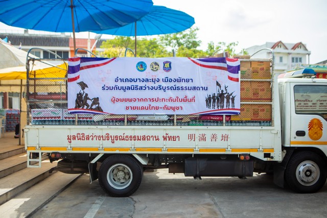 ได้แก่ มูลนิธิสว่างบริบูรณ์ธรรมสถานเมืองพัทยา เทอมินอล21 พัทยา สภ.เมืองพัทยา และวัดชัยมงคลพระอารามหลวง นำสิ่งของเครื่องอุปโภคบริโภคไปช่วยเหลือพี่น้องที่ประสบอุทกภัย และสถานการณ์ปะทะกันในเขตแดนไทย – กัมพูชา ซึ่งวันที่ 5 สิงหาคม 68 ได้ปิดการรับของสิ่งของทั้งหมดแล้วอย่างเป็นทางการ วันนี้จึงได้เดินทางมาส่งมอบสิ่งของให้กับทางมูลนิธิอย่างเป็นทางการเพื่อนำสิ่งของที่ได้รับบริจาคจะถูกส่งไปให้ประชาชนที่ได้รับความเดือดร้อนในพื้นที่ต่อไป