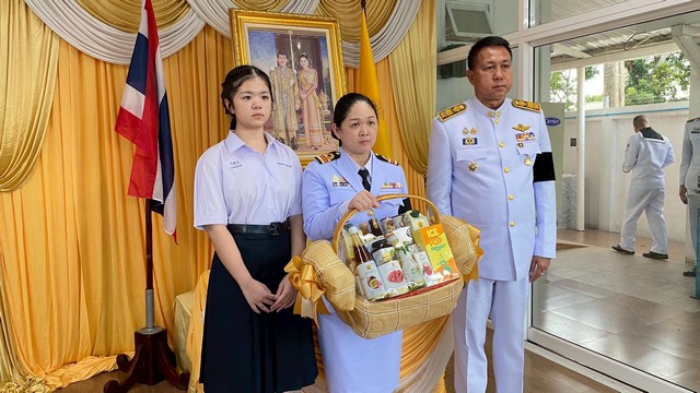 จากนั้น อัญเชิญกระเช้าพระราชทานแก่ ครอบครัวของว่าที่เรือตรี ภัชทราวุฒิ รัตนวงษ์ ผู้เสียชีวิต โดยนาวาตรีหญิง เบญจวรรณ รัตนวงศ์ ภรรยา พร้อมด้วยบุตรสาว เข้ารับสิ่งของพระราชทาน ซึ่งสร้างความปิติแก่ครอบครัวอย่างหาที่สุดมิได้