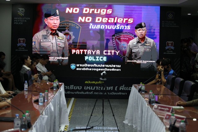 โดย พล.ต.ต.ธวัชเกียรติ จินดาควรสนอง ผบก.ภ.จว.ชลบุรี กล่าวว่า มาตรการ NO Drugs No Dealers ของรัฐบาลนั้น สอดคล้องกับตามมาตรการของสำนักงานตำรวจแห่งชาติ 5 ปลอด คือปลอดเด็ก ปลอดยาเสพติด ปลอดอาวุธ ปลอดค้าประเวณี ปลอดภัย ซึ่งในเรื่องของยาเสพติดนั้นเป็นเรื่องสำคัญ ที่จะต้องแก้ไข โดยเฉพาะสถานบริการ ซึ่งปรากฏในพื้นที่อื่นพบสถานบันเทิงที่มีผู้เสพเป็นจำนวนมาก รวมไปถึงการปล่อยให้เยาวชนอายุต่ำเข้าใช้บริการ และพนักงานเป็นผู้สนับสนุนขายยาเสพติดเสียเอง ซึ่งเจ้าหน้าที่มีข้อมูลทั้งหมด