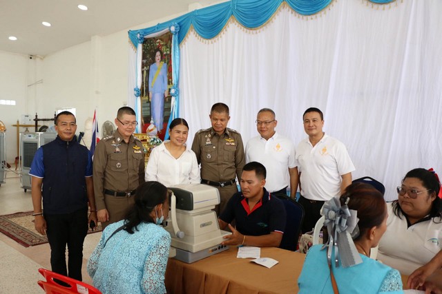 วันที่ 11 สิงหาคม 2568 ที่ศาลายิ่งมียิ่งรวย วัดสวนธรรมปิติ อ.เมือง จ.กาฬสินธุ์ นายอัศวิน ตีระวัฒนพงษ์ ประธานคณะผู้สำเร็จการศึกษา วิทยาลัยการทัพบก ชุดที่ 69 (วทบ.69) พล.ต.ต.ศิรสัณห์ เยื้อนสงวนชัย ผบก.ภ.จว.กาฬสินธุ์ คุณจุรีพร สินธุไพร ประธานแม่บ้านตำรวจฯ พันเอกพิเศษนายแพทย์โสรัฐ พลชัย รองผอ.สำนักงานแพทย์ทหารกองบัญชาการกองทัพไทย พร้อมทีมงามรักษ์ตา และแม่บ้านตำรวจฯร่วมกันจัดกิจกรรมโครงการ“สายตาใส ใจอาสา ถวายหลวงปู่ศิลา”ด้วยการจัดบริการตรวจโรคตา มอบแว่นสายตา และเวชภัณฑ์ให้กับประชาชนฟรี