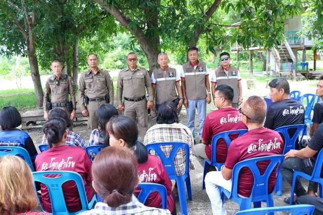 พ.ต.อ. จาตุรนต์ อนุรักษ์บัณฑิต ผกก. สภ. โคกสำโรง พร้อมข้าราชการตำรวจ และคณะกรรมการ กต.ตร.สภ.โคกสำโรง ภจ.ว.ลพบุรี คณะกรรมการหมู่บ้าน คณะกรรมการคุ้ม ทุกคุ้ม ร่วมดำเนินโครงการดำเนินงานตำบลยั่งยืนเพื่อ “แก้ไขปัญหายาเสพติดแบบครบวงจร ตามยุทธศาสตร์ชาติ ด้วยการบำบัด”