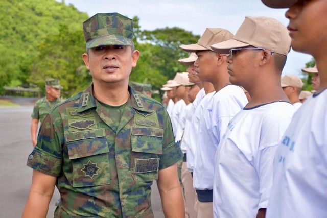 โดยเฉพาะเรื่องความปลอดภัย ดังนั้นจึงขอให้ท่านอุทิศตน อดทน ตั้งใจฝึกหัดศึกษาหาความรู้ ในส่วนของครูที่ทำหน้าที่ฝึก ก็จะเป็นผู้ที่สร้างความเชื่อมั่นดูแลทุกท่านด้วยความมุ่งมั่นเเละตั้งใจเป็นอย่างดี ดังนั้น ขอให้ทุกท่านแจ้งกับครอบครัวได้ว่า ไม่ต้องห่วงกังวล ตราบใดที่ท่านอยู่ในรั้วของ “ศูนย์ฝึกทหารใหม่ ซึ่งเปรียบเสมือนบ้านหลังที่สอง” และเราจะดูแลท่านอย่างดีที่สุด ผมขอยืนยันว่า ศูนย์ฝึกทหารใหม่ จะใช้ทรัพยากรที่มีอยู่ให้เกิดประโยชน์ เเละคุ้มค่ามากที่สุด เพื่อสร้างทหารกองประจำการ ผลัดที่ 2/68 ที่มีคุณค่าต่อประเทศชาติ และกองทัพเรือ”