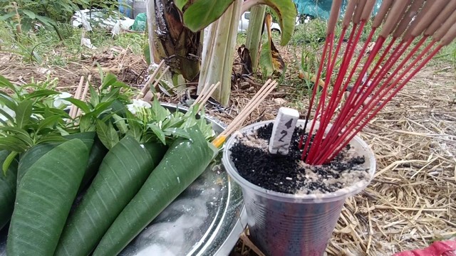 เมื่อพบว่าได้ออกลูกและหัวปลี โผล่ออกมาจากกลางลำต้น สร้างความฮือฮาแก่เจ้าของบ้านเป็นอย่างมาก จึงนำไปเล่าให้เพื่อนบ้านฟัง กระทั่งในวันนี้ ชาวบ้านและเซียนหวยจำนวนหนึ่ง ต่างพากันจัดเตรียมดอกไม้ธูปเทียน เครื่องเซ่นไหว้ แต่งขันธุ์5 เพื่อประกอบพิธีขอหวย ต้นกล้วยประหลาด ตามความเชื่อ โดยใช้แป้งฝุ่นลูบเบาๆที่หวีกล้วยและลำต้น ปรากฎว่า บางคนเห็นเป็นเลข 179 บางคนก็เห็นเป็นเลข 479 และจากการนับผลกล้วย พบว่ามีทั้งหมด 6 หวี จำนวน 30 ลูก ขณะเดียวกัน ชาวบ้านเชื่อว่าเป็นกล้วยตานี จึงได้นำธูปเสี่ยงโชค มาจุดบูชา ปรากฎตัวเลข 42 จึงเตรียมนำเลขที่ได้ ไปหาเสี่ยงโชค เสี่ยงดวง ตามความเชื่อกันต่อไป
