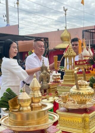 8.คุณ กาญจนา ม่วงศรีงาม 9.ผู้ใหญ่อารมณ์ รวบรวม และคณะมิตรศรัทธาใจบุญทุกท่านเดินทางมาร่วมบุญในงานพิธีเททองหล่อองค์ และ เขียนแผ่นทองร่วมบุญหล่อสร้าง “องค์พ่อขุนรามคำแหง’ พระร่วงเจ้า
