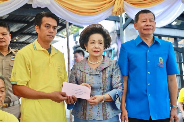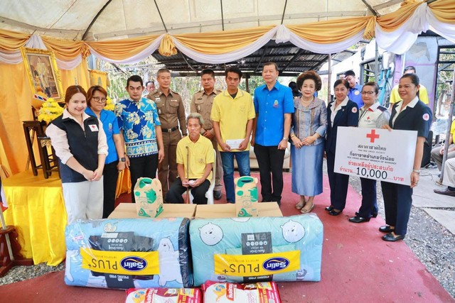 นางสมทรง พันธ์เจริญวรกุล นายกองค์การบริหารส่วนจังหวัดพระนครศรีอยุธยา ร่วมพิธีมอบสิ่งของพระราชทานช่วยเหลือผู้ประสบอัคคีภัย