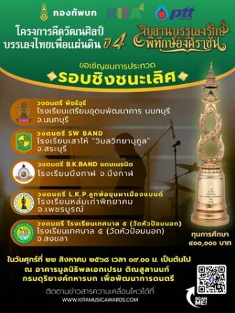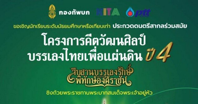 ขอเชิญชวนร่วมส่งกำลังใจ การประกวดวงดนตรีสากลร่วมสมัย “คีตวัฒนศิลป์ บรรเลงไทย เพื่อแผ่นดิน” ปีที่ 4 ระดับกองทัพบก