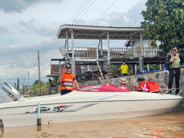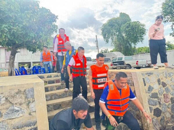 ปทุมธานี นายอำเภอสามโคก นำปลัดอำเภอ กำนัน-ผู้ใหญ่บ้าน ลงเรือสำรวจน้ำที่ประชาชนอาศัยอยู่สองฝั่งริมแม่น้ำเจ้าพระยา ในเขตพื้นที่