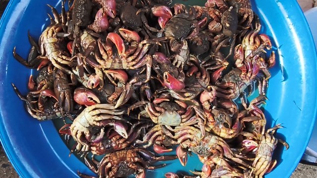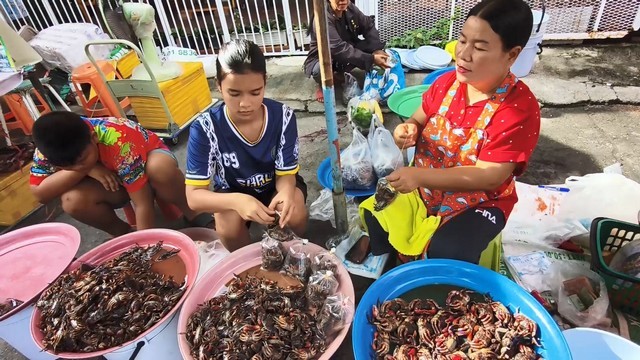 สงขลา-นักเรียนสาว ม. 4 โรงเรียนนวมินทราชูทิศทักษิณ ใช้เวลาว่างวันหยุดวันเสาร์วันอาทิตย์ ช่วยคุณแม่ ขายปูแสมดอง ในตลาดนัดอย่างคล่องแคล่ว