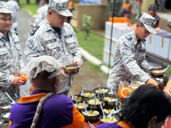 วันที่ 23 สิงหาคม 2568 นาวาเอก ธวัชชัย สอนซี รองเสนาธิการทัพเรือภาคที่ 1 / ผู้บังคับหมวดเรือลาดตระเวนชายแดน ทัพเรือภาคที่ 1 เป็นผู้รับมอบการสนับสนุนจากคณะอาสาสมัครฯ สมาคมประมงจังหวัดตราด และผู้มีจิตศรัทธา ที่ได้ร่วมสนับสนุนการจัดเลี้ยงอาหารกลางวันและอาหารเย็น ทั้งนี้ นายฝันเด่น จรรยาธนากร (พี่เล็ก) เป็นผู้แทนมอบบะหมี่กึ่งสำเร็จรูป ขนม และสิ่งของจำเป็นต่าง ๆ เพื่อมอบเป็นกำลังใจแก่กำลังพลที่ปฏิบัติภารกิจส่วนหน้า