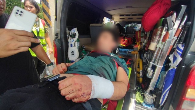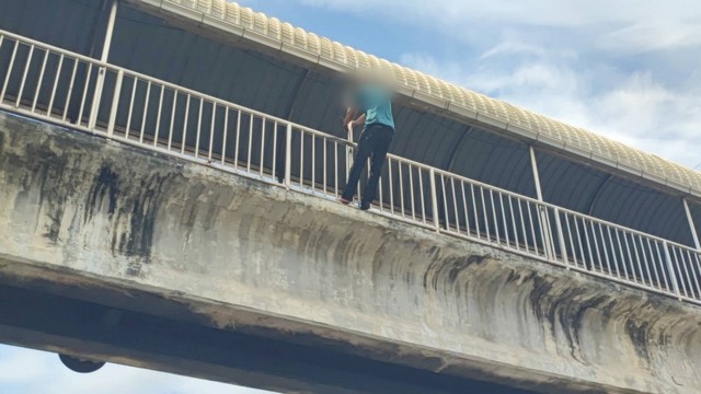 เมื่อวันที่ 25 ส.ค.68 เวลา10.30 น. ร.ต.อ.กิตติศักดิ์ ไกรษร ร้อยเวรสองศูนย์สภ.คลองหลวงได้รับแจ้งเหตุมีชายต่างชาติใช้กรรไกรทำร้ายตนเองและพยายามจะกระโดดสะพานลอยคนข้ามหน้าบริษัทเซนทาโก ถนนพหลโยธิน ต.คลองหนึ่ง อ.คลองหลวง จ.ปทุมธานี จึงไปที่เกิดเหตุพร้อมด้วยเจ้าหน้าที่ตำรวจสายตรวจ เจ้าหน้าที่ตำรวจสืบสวนสภ.คลองหลวง เจ้าหน้าที่มูลนิธิร่วมกตัญญูและเจ้าหน้าที่อาสาร่วมด้วยช่วยกัน