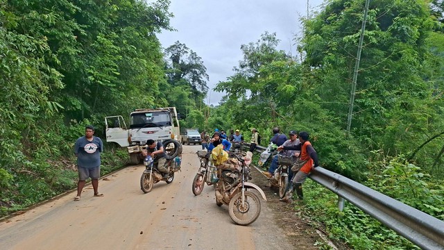 หลังจากที่รถแม็คโครเคลียร์ดินและกิ่งไม้ที่ปิดเส้นทางออกสำเร็จ เกษตรกรที่รออยู่ต่างรีบขับรถจักรยานยนต์เข้าไปในสวนของตัวเองด้วยความดีใจ เพื่อตรวจสอบผลผลิตที่อยู่ในสวนโดยทันที