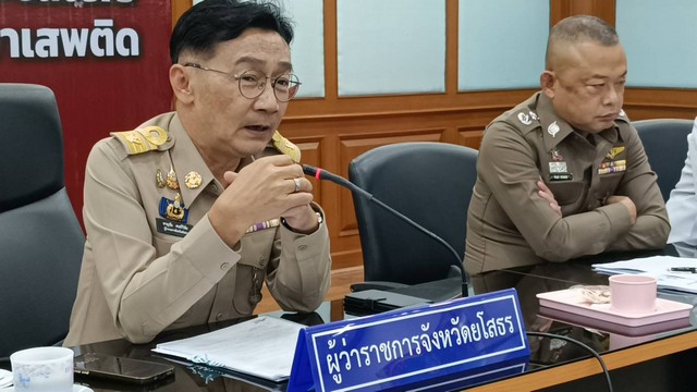 วันที่ 28 สิงหาคม 2568 ที่ห้องประชุมยศสุนทร ชั้น 3 ศาลากลางจังหวัดยโสธร นายชาญชัย ศรศรีวิชัย ผู้ว่าราชการจังหวัดยโสธร พร้อมด้วย ว่าที่ร้อยตรี ขรรค์ไชย ทันธิมา รองผู้ว่าราชการจังหวัดยโสธร พลตำรวจตรี ภิรมย์ สวนทอง ผู้บังคับการตำรวจภูธรจังหวัดยโสธร นายวิทยา วัฒนเรืองโกวิท นายแพทย์สาธารณสุขจังหวัดยโสธร และ พันเอก ธนาธิป เรียงอิศราง รอง ผอ.รมน.จังหวัด ย.ส. (ท.) ร่วมแถลงผลการกวาดล้างยาเสพติด ตามที่นายภูมิธรรม เวชยชัย รองนายกรัฐมนตรีและรัฐมนตรีว่าการกระทรวงมหาดไทย รักษาราชการแทนนายกรัฐมนตรี มอบยโยบายสำคัญของกระทรวงมหาดไทย ในการค้นหาผู้เสพ/ผู้ติดยาเสพติด และผู้ค้ายาเสพติด ที่เป็นการบูรณาการร่วมตามแผนปฏิบัติการกวาดล้างยาเสพติด No Drugs No Dealers ผนึกกำลังชุมชน ปลอดยาเสพติด และแผนปฏิบัติการยศสุนทรพิทักษ์ Re X-ray พื้นที่ในหมู่บ้าน/ชุมชน เพื่อให้ปลอดยาเสพติด