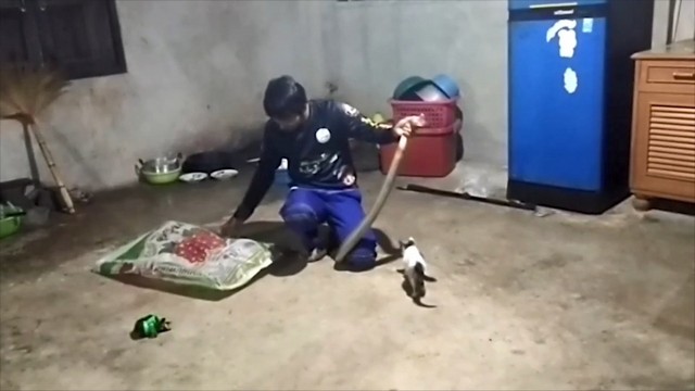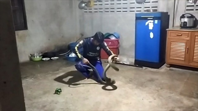 เมื่อนายทวีศักดิ์ ไปถึงบ้านเลขที่ดังกล่าว ก็รีบเข้าตรวจสอบที่บริเวณหลังตู้เย็น ก็พบงูจงอางตัวใหญ่ ขดตัวอยู่ จึงใช้อุปกรณ์ในการจับงูเข้าทำการจับทันที โดยใช้เวลาไม่นานนักก็สามารถจับงูจงอางไว้ได้ นำมาวัดได้ความยาว 3 เมตร จึงจับใส่กระสอบ เตรียมนำไปปล่อยคืนสู่ป่าธรรมชาติที่อยู่ห่างไกลบ้านเรือนผู้คนต่อไป