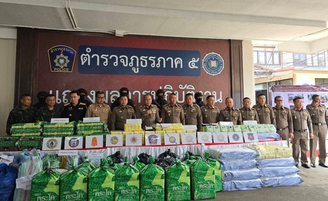 เชียงใหม่-ผบช.ภ.5 แถลงผลการจับกุมผู้ต้องหาคดียาเสพติดรายสำคัญ 4 คดี ยึดยาบ้า 8.6 ล้านเม็ด ไอซ์ 450 กก.