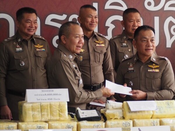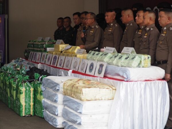แถลงผลการจับกุมผู้ต้องหาคดียาเสพติดรายสำคัญ จำนวน 4 คดี รวมของกลางยาบ้า จำนวน 8,600,000 เม็ด และ ไอซ์ จำนวน 450 กก. ได้แก่