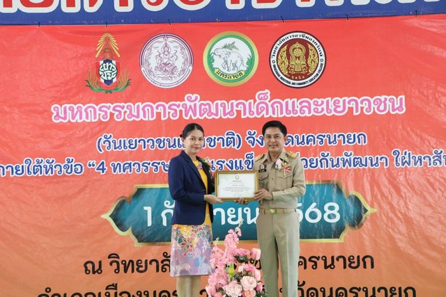 วันที่ 1 กันยายน 2568 เวลา 10.00 น. นายชานน วาสิกศิริ ผู้ว่าราชการจังหวัดนครนายก เป็นประธานในพิธีเปิด มหกรรมการพัฒนาเด็กและเยาวชน (วันเยาวชนแห่งชาติ) ภายใต้หัวข้อ “4 ทศวรรษ ร่วมแรงแข็งขัน ช่วยกันพัฒนา ใฝ่หาสันติ” พร้อมด้วย พัฒนาสังคมและความมั่นคงของมนุษย์จังหวัดนครนายก หัวหน้าบ้านพักเด็กและครอบครัวจังหวัดนครนายก ผู้อำนวยการวิทยาลัยการอาชีพนครนายก หัวหน้าส่วนราชการ ประธานสภาเด็กและเยาวชนจังหวัดนครนายก แขกผู้มีเกียรติ และผู้เข้าร่วมงาน ณ วิทยาลัยการอาชีพนครนายก ตำบลพรหมณี อำเภอเมืองนครนายก จังหวัดนครนายก