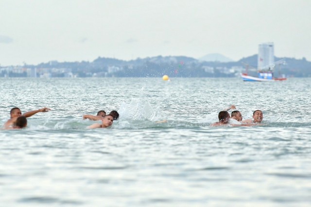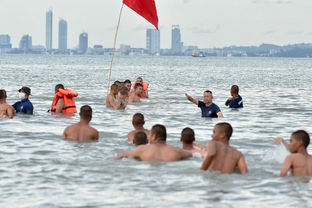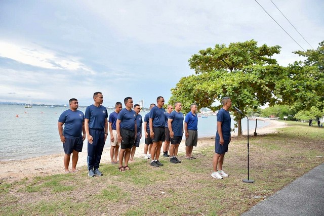 วันพุธที่ 3 กันยายน 2568 น.อ.ทิวา อ่อนละออ ผู้บังคับการศูนย์ฝึกทหารใหม่ กรมยุทธศึกษาทหารเรือ (ผบ.ศฝท.ยศ.ทร.) พร้อมด้วยคณะผู้บังคับบัญชา ร่วมกิจกรรมว่ายน้ำในทะเลกับทหารใหม่ ผลัดที่ 2/68 ณ อ่าวบางเสร่ ต.บางเสร่ อ.สัตหีบ จ.ชลบุรี