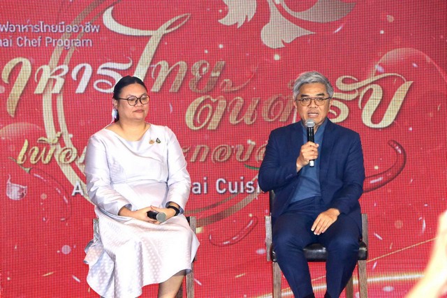 ผู้สื่อข่าวรายงานว่า กรมส่งเสริมอุตสาหกรรม กระทรวงอุตสาหกรรม ร่วมกับมหาวิทยาลัยเทคโนโลยีราชมงคลธัญบุรี และสำนักงานกองทุนหมู่บ้านและชุมชนเมืองแห่งชาติ จัดงานแถลงข่าวประชาสัมพันธ์เพื่อเปิดรับสมัครผู้เข้าร่วมการฝึกอบรม หลักสูตรเชฟอาหารไทยมืออาชีพ (Master Thai Chef Program) ภายใต้โครงการส่งเสริมซอฟต์พาวเวอร์สาขาอาหาร