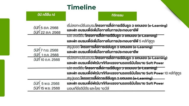 * เสริมโอกาสอาชีพใหม่ สร้างรายได้จริง และเชื่อมโยง Soft Power สู่วิถีชีวิตชุมชน